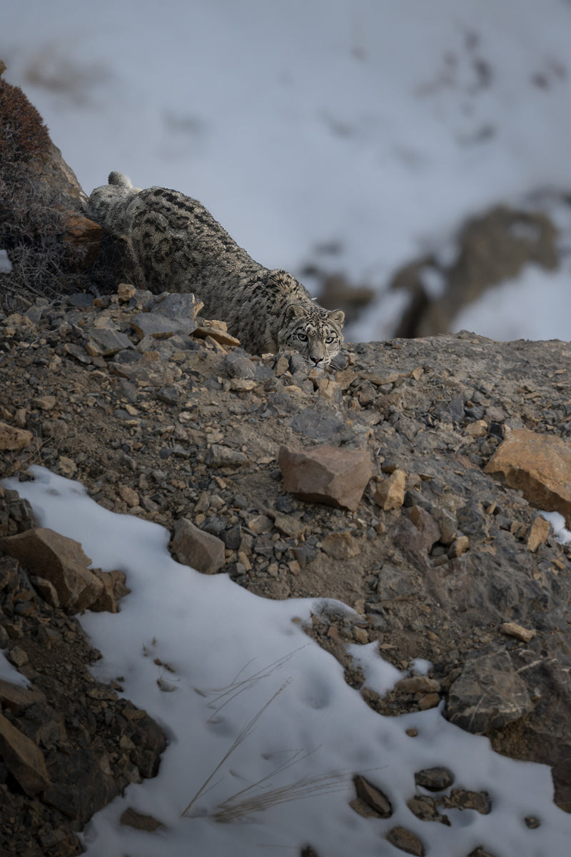 Piccoli villaggi disseminati tra i versanti, abitati da comunità di pastori e monaci buddisti, resistono al tempo e al clima con una calma che noi, occidentali, fatichiamo a comprendere. Case fredde, cucine fumose e preghiere che scandiscono il tempo. In queste culture, il leopardo delle nevi non è un nemico, ma anzi è parte del sacro equilibrio. Capita che vengano predati gli yak o le capre allevate, ma nessuno cerca vendetta. La perdita è considerata un’offerta, un sacrificio naturale dal carattere religioso. I racconti dei vecchi parlano del leopardo come di un essere spirituale. Presenza sfuggente, protettore delle montagne, simbolo di forza e mistero. Forse è proprio per questo che vederlo, anche solo per un attimo, riempie di emozioni difficili da provare altrove.