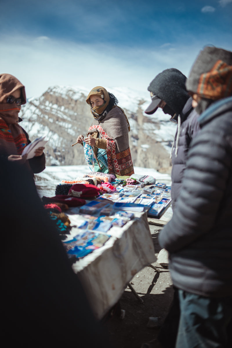 Il leopardo delle nevi è un maestro dell’adattamento. Vive a quote proibitive, dove l’aria è rarefatta e le temperature scendono fino a -35°C. La sua coda lunga, il mantello folto e l’incredibile capacità di mimetizzarsi lo rendono quasi invisibile. Un’ombra tra le ombre. Preda stambecchi, blue sheep e altri animali perfettamente adattati a questo ambiente estremo. Non spreca nulla: ogni movimento è misurato, ogni scelta è orientata alla sopravvivenza. Come tutti qui. In queste montagne non vivono solo animali, ma anche persone che affrontano condizioni durissime con uno spirito sorprendente. Vivono con poco, adattandosi a tutto, con una forza e una positività autentica.
