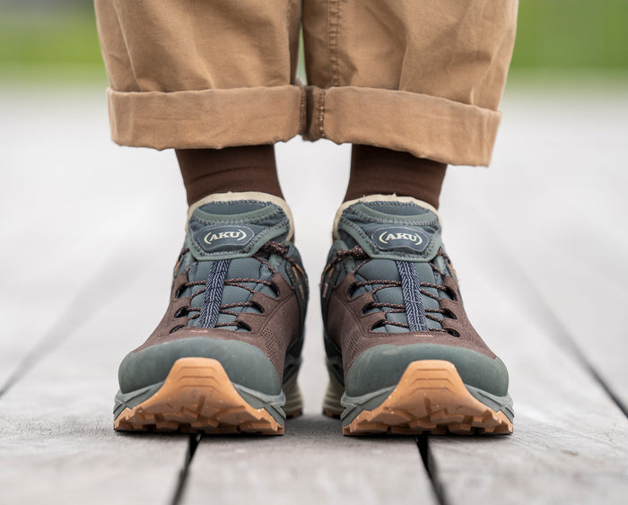 Omnia V-Light GTX incarna i valori di AKU, un'impresa capace di combinare tradizione manifatturiera e responsabilità ambientale. Crediamo in un prodotto autentico, funzionale e duraturo, perché ridurre l’impatto significa anche creare calzature che resistono nel tempo attraverso uno standard produttivo basato sull’azione responsabile.