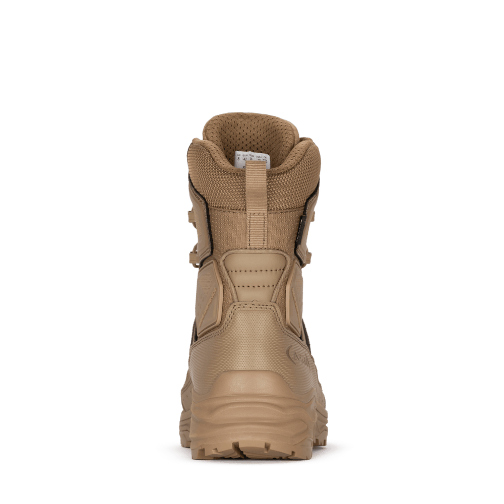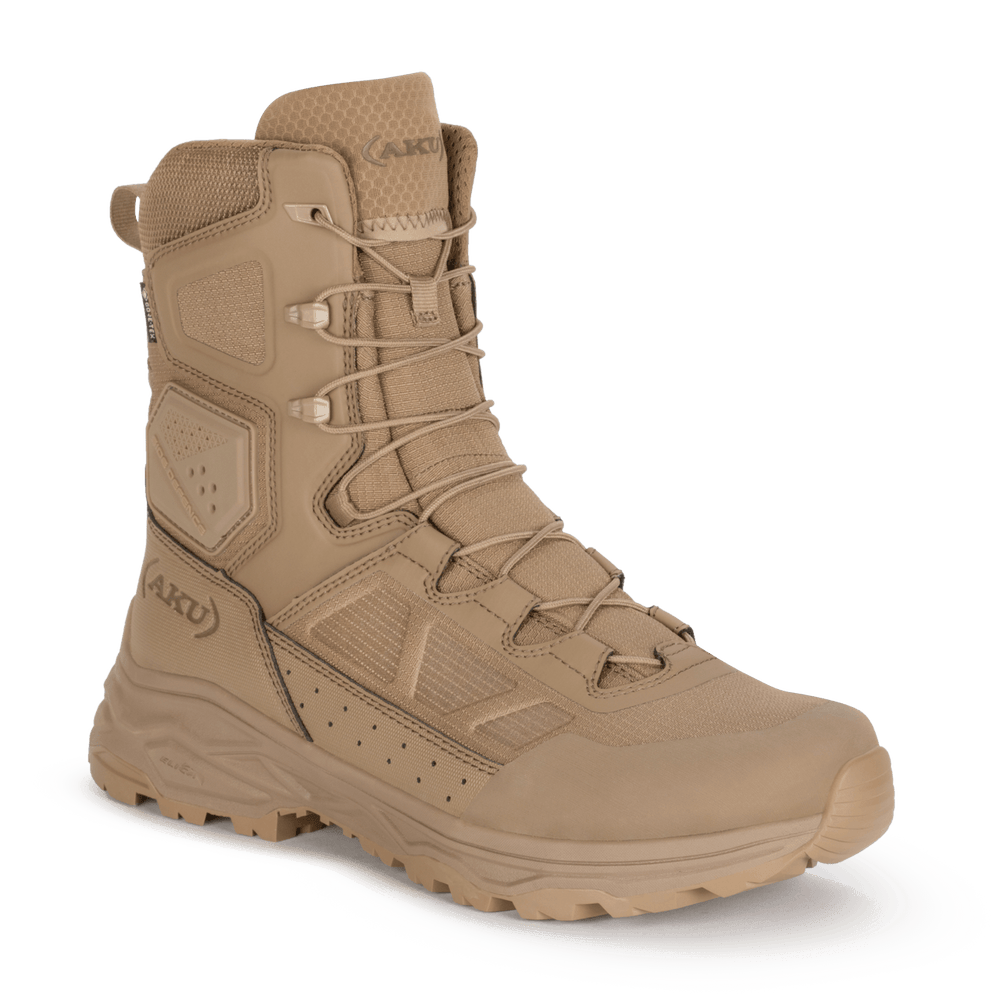 Diese Stiefel wurden entwickelt, um eine vorbildliche Mischung aus Leistung, Komfort, Leichtigkeit und Zweckmäßigkeit zu bieten, die den Benutzern in verschiedenen anspruchsvollen Umgebungen und Aktivitäten zur Verfügung steht. Sie vereinen taktische Funktionalität mit der Flexibilität, die für eine breite Palette von Aktivitäten erforderlich ist, von militärischen bis hin zu polizeilichen Aufgaben mit Leistungen, die durch die entsprechende Zertifizierung EN 20347: 2022 messbar sind. Merkmale wie das Schnellschnürsystem (und die Zungentasche) und die einfache Pflege (leichte Reinigung und schnelles Trocknen) motivieren Nutzer, die neben der Leistung auch den Komfort schätzen. Die Kombination von Materialien wie Mikrofaser" und Stoffen zusammen mit Merkmalen wie Gummikappen und verstärktem Knöchel gewährleisten Robustheit gegen Abnutzung und Verschleiß und sorgen für eine lange Nutzungsdauer in unterschiedlichem Terrain und unter verschiedenen Bedingungen. Die GORE-TEXR Technologie zur Wasserabdichtung sowie atmungsaktive Materialien machen diese Stiefel äußerst anpassungsfähig an unterschiedliche Wetterbedingungen und Gelände. Die Benutzer schätzen die Möglichkeit, ihre Füße unabhängig von den äußeren Bedingungen trocken und komfortabel zu halten, was diese Stiefel für den Allwettereinsatz geeignet macht.