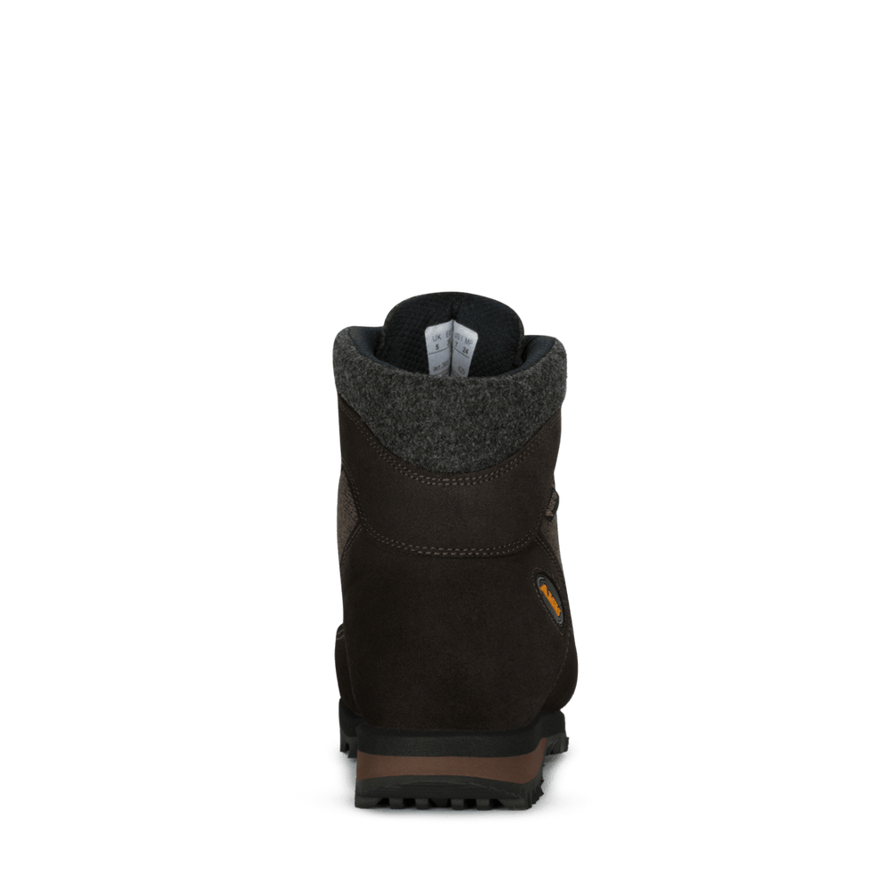 Historisches AKU-Wandermodell. Außergewöhnlich komfortable Passform, hier in der "warmen" Version mit hoher Wärmeisolierung, ideal zum Wandern in kalten Umgebungen. Futter aus 93% recyceltem Gore Cirrus XT und Schuhkragen aus Filz. Hergestellt aus ausgewählten, hochwertigen Materialien, deren Herkunft vollständig rückverfolgbar ist.