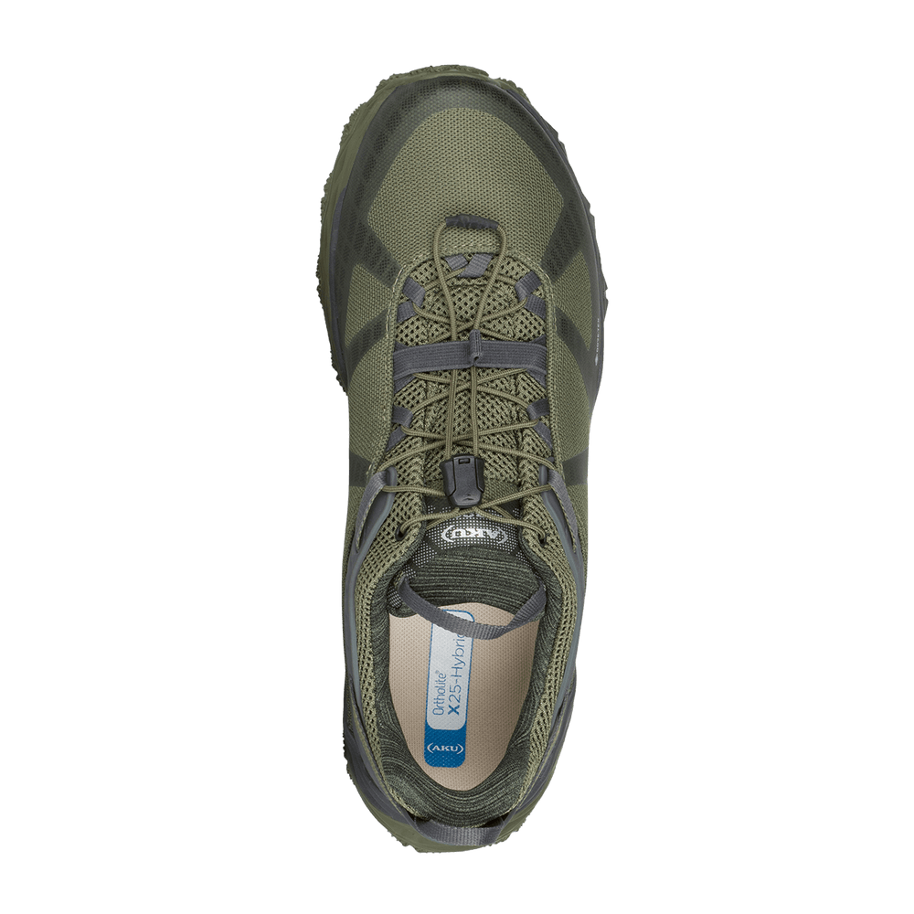 Fast hiking shoe for dynamic activities, suitable for off-road adventures where traction, protection and high cushioning are required. The Vibram Traction Lug sole with Megagrip and High Cushion and High Rebound EVA midsole offers amazing grip and cushioning. It features Dynamic Fit technology that dynamically adapts the boots heel tension with your natural stride to increase comfort and stability, and the AKU Elica Natural Stride System to promote biodynamic efficiency.