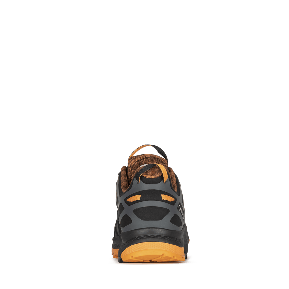 Fast hiking shoe, dynamic and reliable even on the most difficult trails. Rocket DFS GTX adopts the innovative Vibram Traction Lug technology that improves traction and grip by 25% thanks to the special design. The upper has a crossed rib structure and is protected by a 3D print layer. The exclusive AKU Dual Fit System (DFS) technology, here realized in the version for speed hiking, allows you to vary the degree of precision of the fit by simply acting on the two different lacing systems. It is built with AKU Elica Natural Stride System technology to promote biodynamic efficiency.