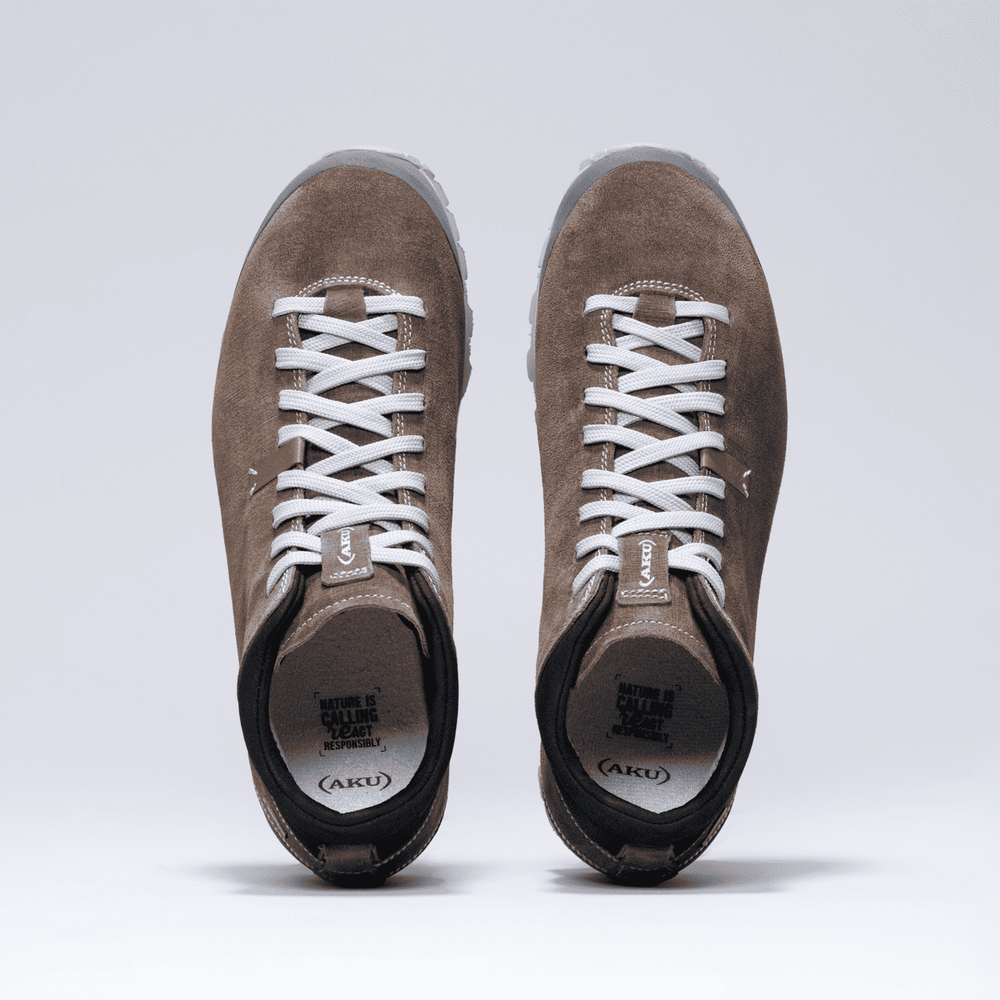 Footwear for urban, travel and leisure use in contact with nature. Upper made of refined high-quality suede leather with scuffed effect. New design of collar, toe and heel protection.