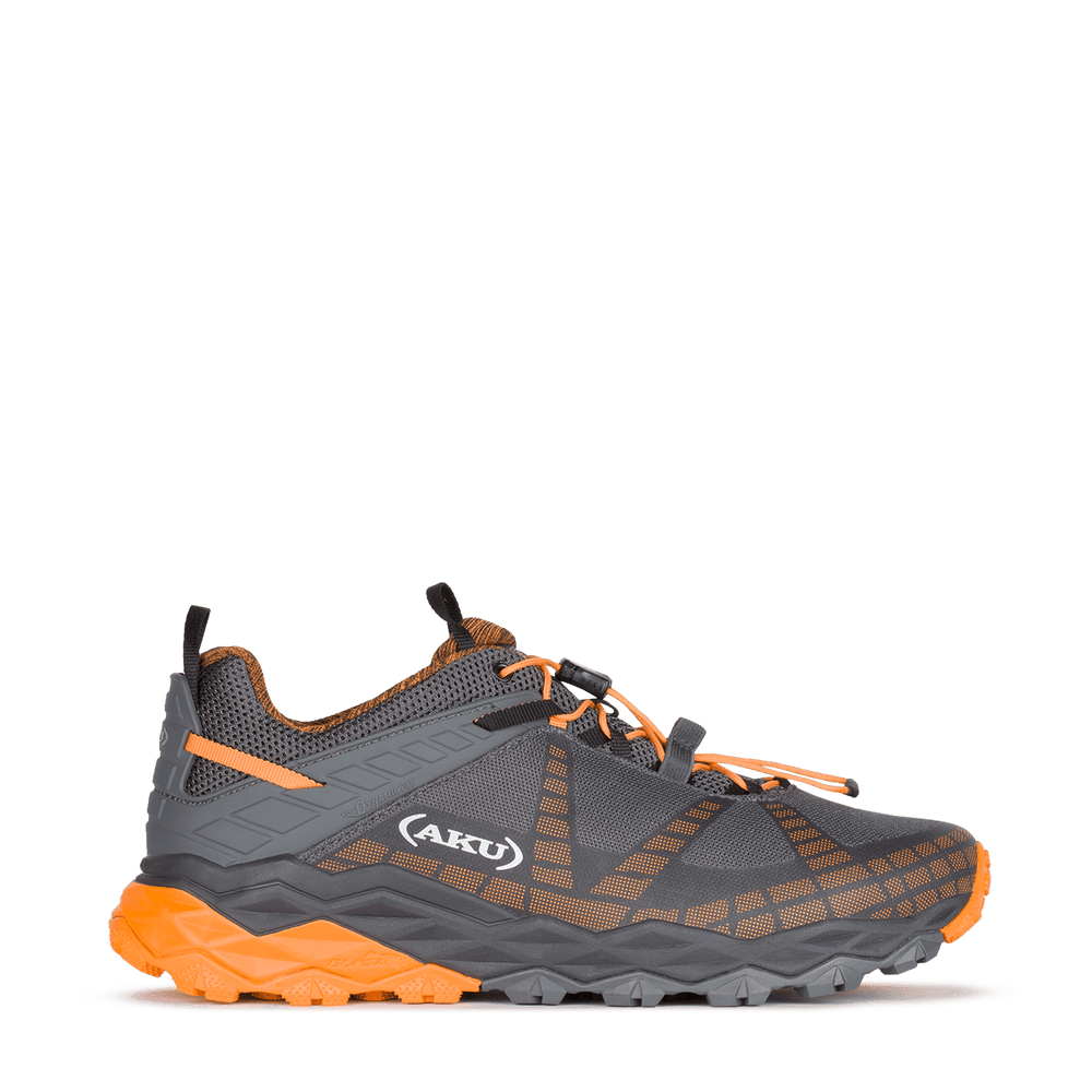 Fast hiking shoe for dynamic activities, suitable for off-road adventures where traction, protection and high cushioning are required. The Vibram Traction Lug sole with Megagrip and High Cushion and High Rebound EVA midsole offers amazing grip and cushioning. It features Dynamic Fit technology that dynamically adapts the boots heel tension with your natural stride to increase comfort and stability, and the AKU Elica Natural Stride System to promote biodynamic efficiency.