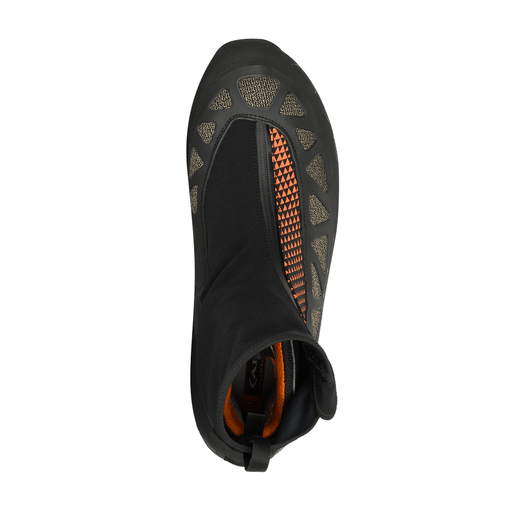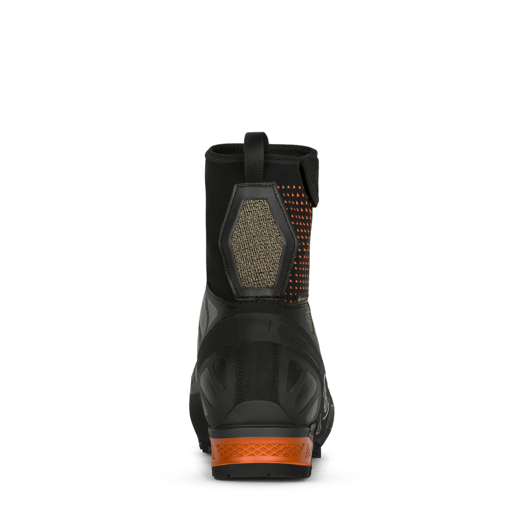 Aurai DFS GTX, the AKU technical footwear for high altitude mountaineering and ice climbing. A synthesis of lightness, precision and comfort, allowing one to tackle the most demanding climbs, even with a fully loaded backpack. These boots offer maximum protection and high warmth, even for prolonged use in cold environments. The thermal insulation is guaranteed by a Gore-Tex Insulated Comfort lining with its 350g padding, Primaloft inserts on the tongue and toe box and an anatomic felt footbed layered with aluminum. Its gaiter of elastic fabric covers the entire shoe and rises above the cuff for maximum warmth and protection from snow and ice. Walking is extremely easy, thanks also to the AKU Elica Natural Stride System which enhances the biodynamic efficiency. The Kevlar upper, combined with the Spider Frame over-injection, guarantees resistance to impact and abrasion and excellent freedom of movement. Aurai DFS GTX adopts the Dual Fit System, an exclusive AKU technology, allowing a fit customization by simply acting on the two different lacing systems. The sole is Vibram Croda Litebase, compatible with automatic crampons, ensuring stability, grip and precision, even in the most technical passages.