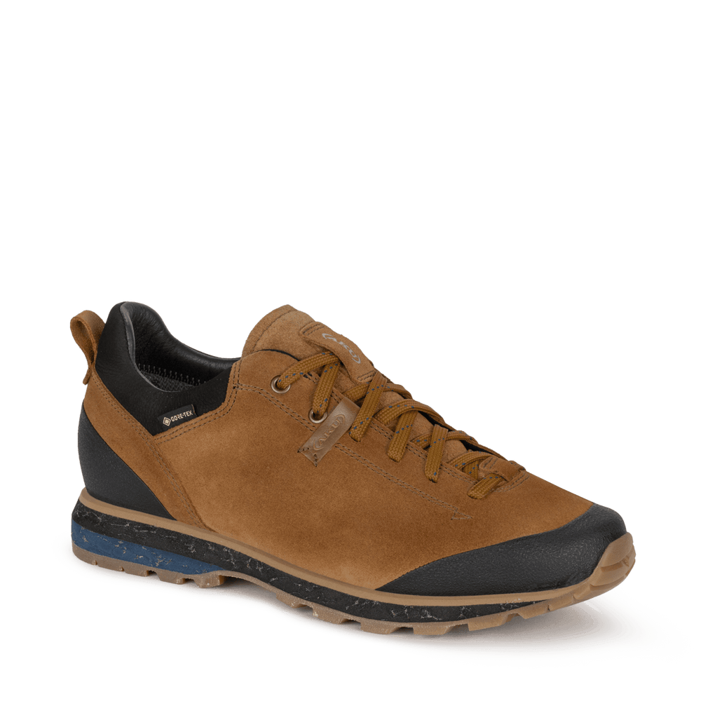 Young, refined, lightweight shoe for urban use, travel and leisure activities in contact with nature. It's produced in Europe in AKU's factories. 100% of the product's components are traceable to origin. The use of environmentally friendly materials characterizes the new Bellamont IV: the lining is made of Gore-Tex laminate with 99% recycled yarns; the tread compound, Vibram® N-OIL, is made from more than 90%petroleum-free ingredients and dyes made from natural pigments; laces made from recycled synthetic fabric and semplified lacing with fewer holes and two metal rings at the top. Thinner toe protection to reduce glue use and weight.