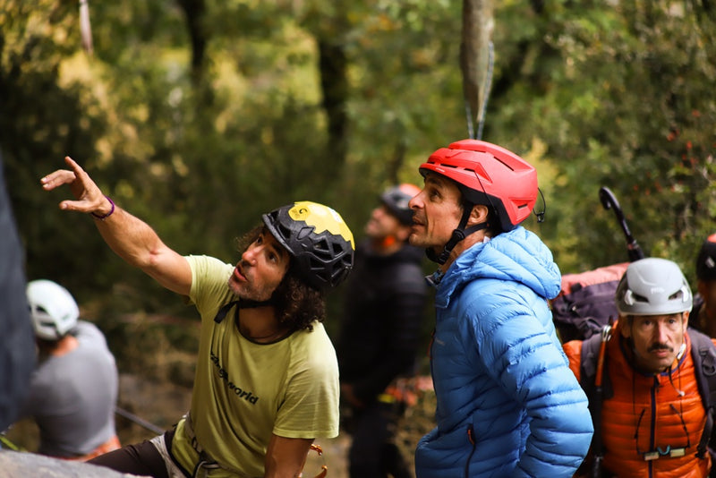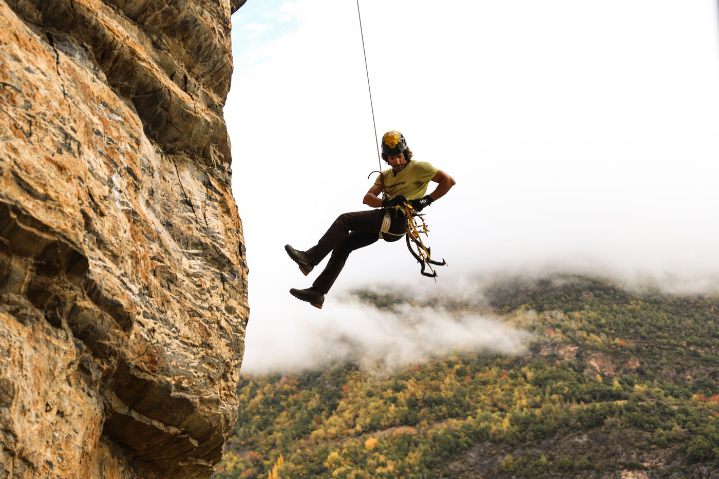 Among the leading figures in this discipline is Santi Padros , a Spanish mountain guide and AKU ambassador, who has chosen to live in the Dolomites of Val di Zoldo. " For me, mountaineering is a way of thinking, of being in nature ." Living in the mountains allows Santi to practice multiple disciplines, adjusted to the changing temperatures and the opportunities that arise . Passionate about climbing, canyoning, and hiking, when the temperatures drop, he finds his ideal terrain: ice falls and ice climbing. Dry tooling is thus a perfect discipline for training before the ice structures are accessible.