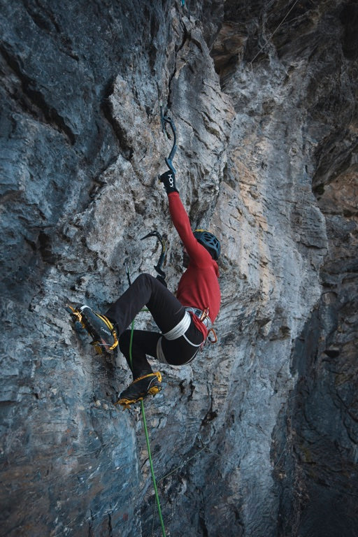 For dry tooling, as for any form of modern mountaineering, precise and reliable tools are needed, capable of supporting the technical gesture without ever compromising comfort and safety.