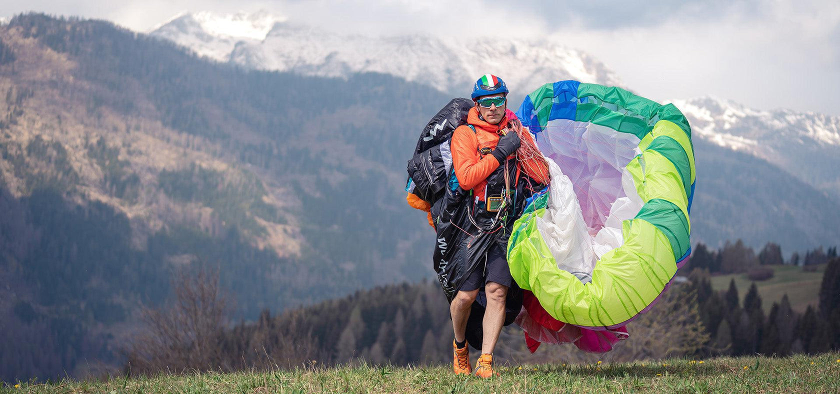 FLY : take-off from Casera Marin, clear route, target at Ponte di Brenta, Tezze. - HIKE/RUN 2 : Fold and put in the sailing backpack and run to the finish line in Pra Minati Pro Loco Tezze.