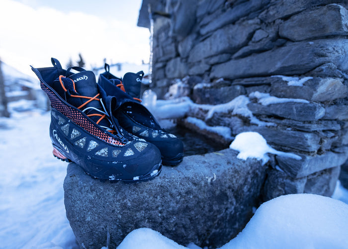 AKU has developed technical footwear suitable for harsh winter climates that guarantee protection from atmospheric agents and high thermal insulation during prolonged use in cold environments. However, this is not enough, two other elements make the difference in ice climbing: lightness and comfort. Aurai DFS GTX with its 700 g is certainly the shoe of excellence for ice climbing and winter mountaineering enthusiasts. As regards comfort, Aurai adopts the exclusive AKU Dual Fit System (DFS) technology which allows a rapid double adjustment of the fit: snug and ultra sensitive in climbing sections, comfortable and soft to facilitate blood circulation in moments of rest or approach.