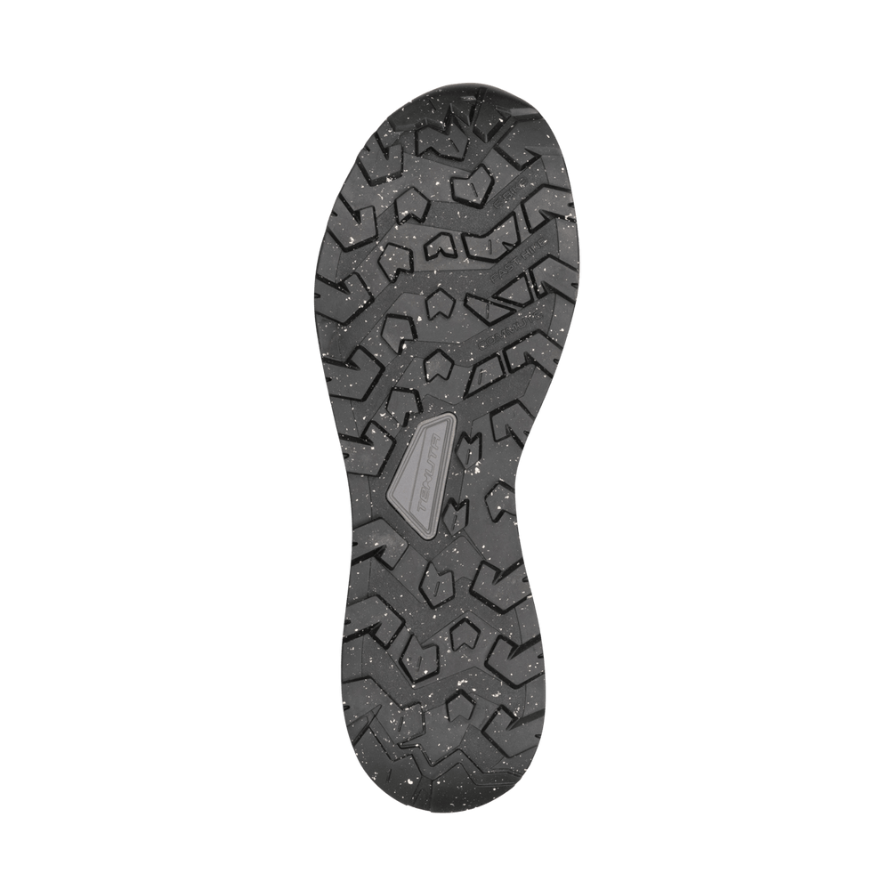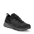 Versatile model suitable for multiple outdoor activities including light and fast hiking, e-biking and urban adventures. The upper is completely made of non-animal and recycled materials. The water repellency treatments are PFAS-free as is the waterproof Gore-Tex lining, made of ePE. The two densities of the wedge and the tread are co-moulded to reduce the use of adhesives. The EVA used is partially bio-based. The tread is made of partially recycled rubber with an asymmetrical design in synchrony with the AKU Elica Natural Stride System, which promotes biodynamic efficiency. The inner part of the forefoot has an increased toe cap density to promote grip on e-bike pedals.