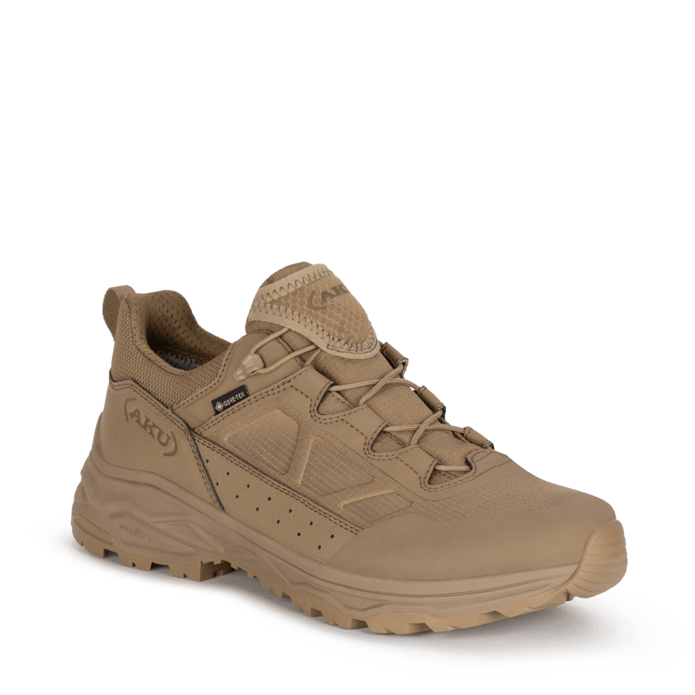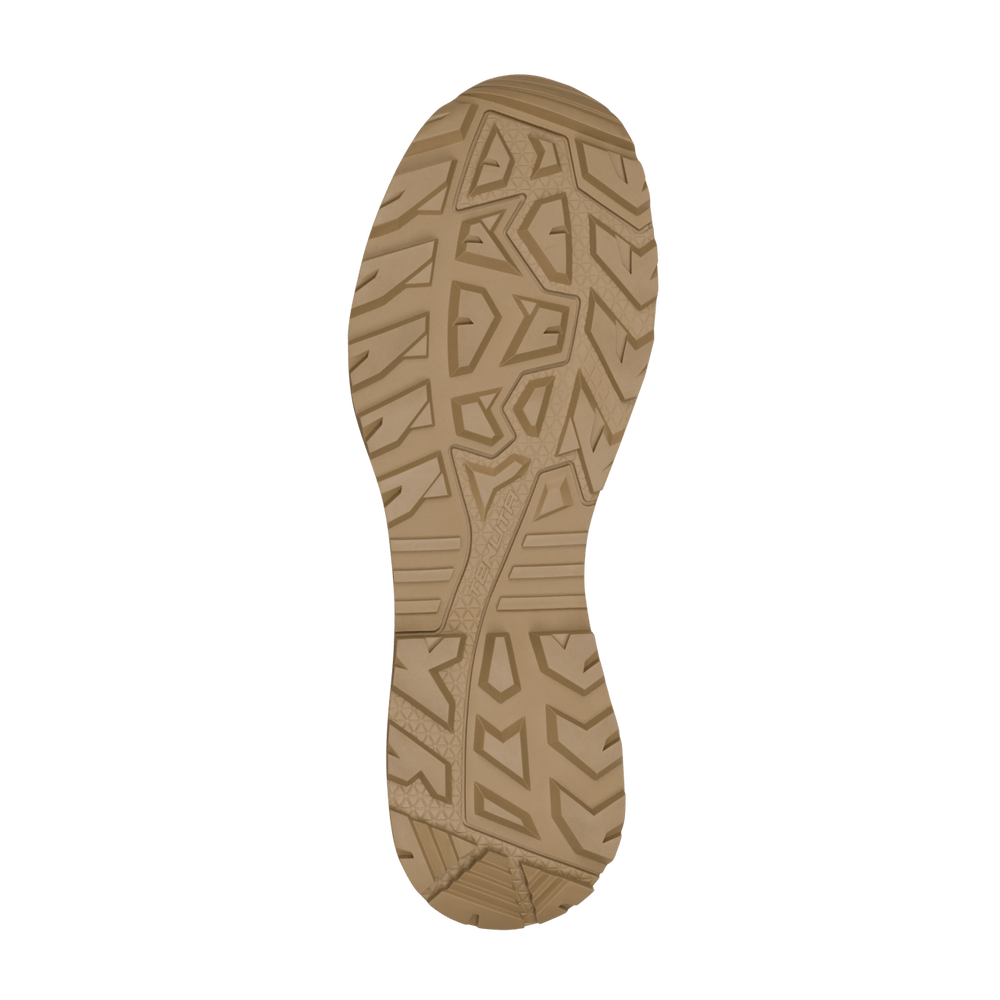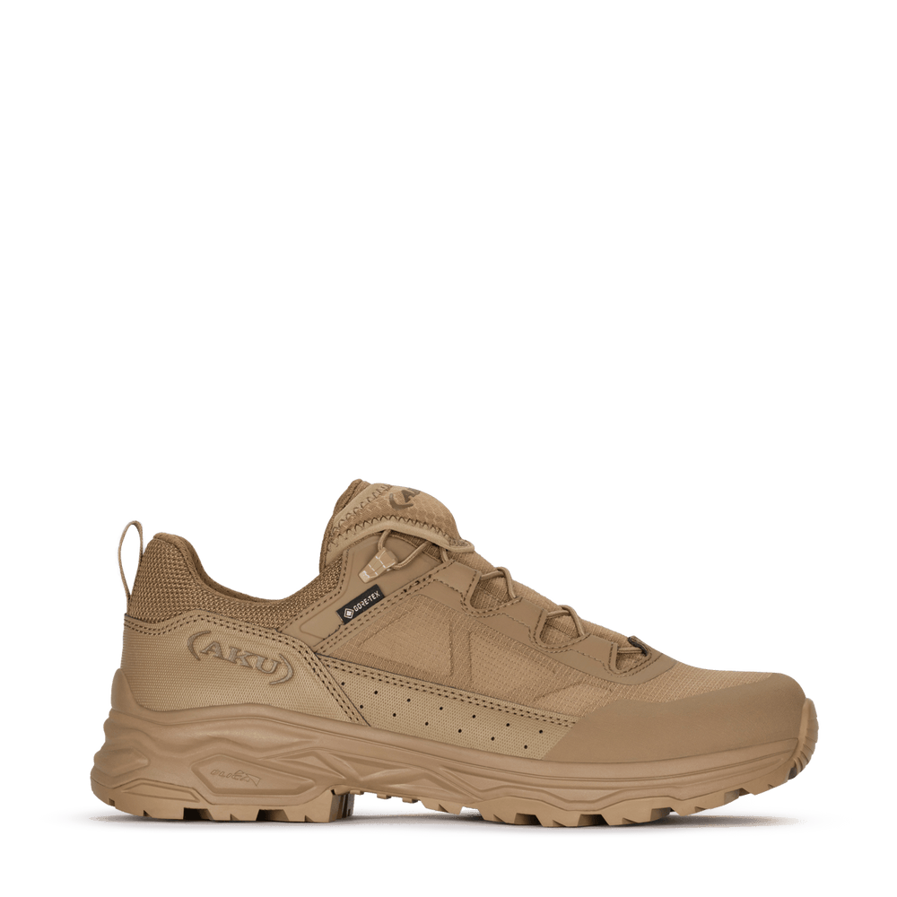 These boots have been designed to represent the paragon blend of performance, comfort, lightness and practicality to offer to users across various demanding environments and activities, balancing tactical functionality with the flexibility needed for a wide range of activities, from military to law enforcement duties with performances that are measurable by the related certification EN 20347: 2022. Features like quick-lace system (and its tongue pocket) and ease to maintain (easy cleaning and quickdrying) motivate users who value convenience alongside performance, while the combination of materials like "microfiber" and fabrics, along with features like rubber caps and reinforced ankle, ensures robustness against wear and tear, providing long-lasting use in various terrains and conditions. The inclusion of GORE-TEXR technology for waterproofing, alongside breathable materials, makes these boots highly adaptable to different weather conditions and terrains. Users value the ability to keep their feet dry and comfortable, regardless of external conditions, making these boots suitable for all-weather use.