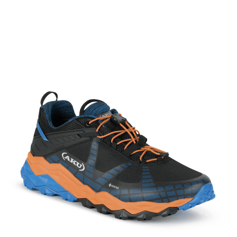 Calzatura da escursionismo veloce e per attività dinamiche, adatta per avventure off-road dovè richiesta trazione, protezione e alta ammortizzazione. La suola Vibram Traction Lugs con Megagrip e zeppa High Cushion e High Rebound EVA offre aderenza e ammortizzazione sorprendenti. Addotta la tecnologia Dynamic Fit, che permette di adattare dinamicamente la tensione del tallone al proprio passo con un migliore comfort e stabilità e il sistema AKU Elica Natural Stride System per favorire lefficienza biodinamica.
