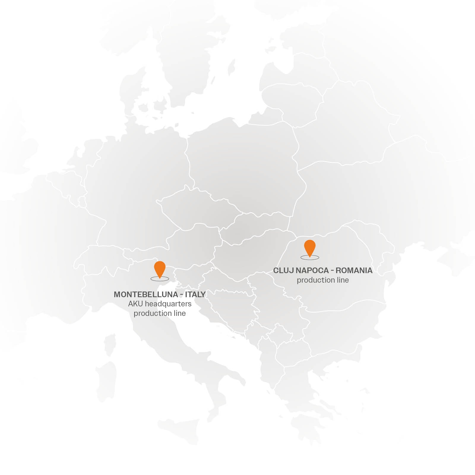 AKU è un’azienda italiana nata a Montebelluna, nel cuore del distretto italiano della calzatura sportiva, specializzata nella produzione di calzature OUTDOOR, PROFESSIONAL e HUNTING di alta qualità. Due unità produttive di proprietà in Italia e Romania. Una distribuzione su scala globale fra Europa, Nord America e Asia per un totale di oltre 50 mercati.